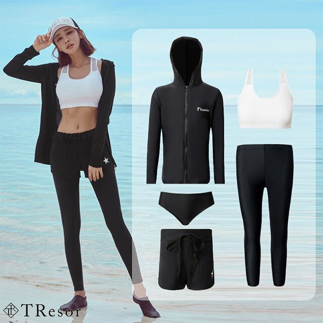 レディース;長袖ラッシュガード、ブラトップ、短パン、レギンスの4枚セット