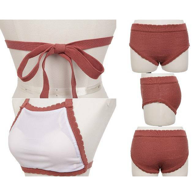 水着 レディース キュート ニット 体型カバー ビキニ 人気 トレンド リボン セパレート ハイウエスト ナチュラルカラー シンプル 小胸 バスト 大人 女子 リゾート