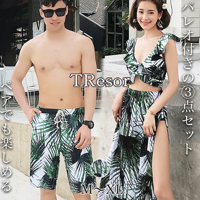 水着 レディース 水着 ペア水着 カップル 体型カバー大人可愛い 可愛い かわいい お洒落 おしゃれ 綺麗 ゴージャス エレガント クラシック クラシカル ナチュラル カジュアル 個性的 レディース パレオ フリル 美胸 盛れる SNS映え リゾート